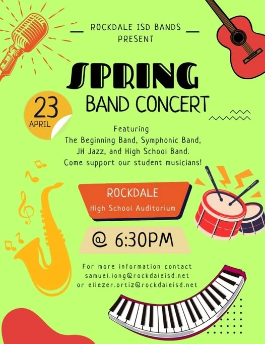 If you missed the concert, we've got you you covered. You can click Play Audio below to listen the Rockdale ISD Band Spring Concert from April 23rd.